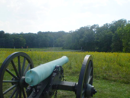 (view from the trolley path at the southern end of the Triangular Field toward Devil’s Den)