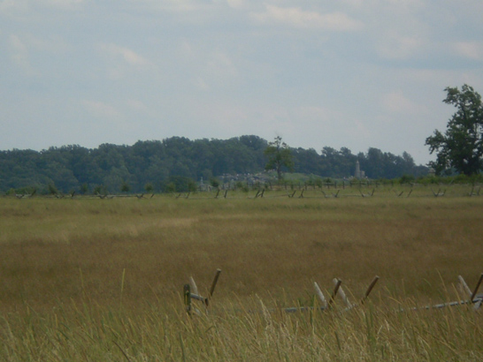 (view from the Emmitsburg Road looking east toward “The Angle”)