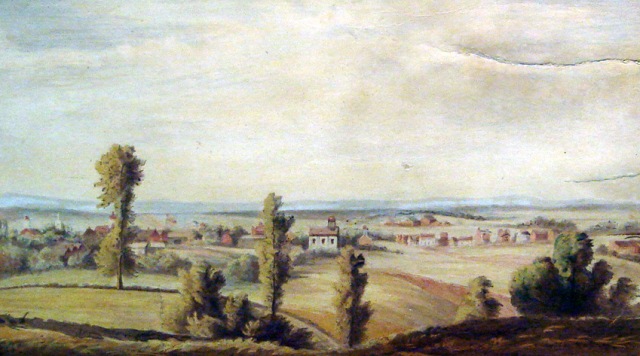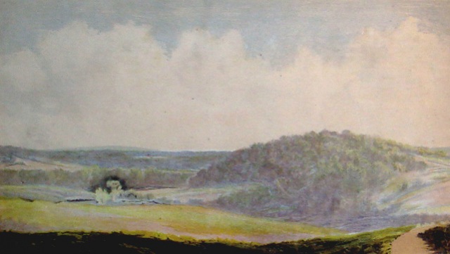 When the Civil War began, George joined the Union Army serving in the Commissary Department and later decided to cover the magnitude of the war on canvas, traveling over 3,000 miles to visit major battlefields in Virginia, Tennessee, Georgia, Mississippi, and at Gettysburg. Many of his paintings ended up being sold at a New York auction house in 1888, but 24 of the unsold ones were donated after his death (in 1911) by a friend to the National Park Service in 1948. These works of art were distributed in the 1970’s among the appropriate National Parks, with Gettysburg National Military Park receiving three of them (Fredericksburg received seven, Appomattox received five, Chickamauga received five, Shiloh received one, and the NPS Region One Office received three):