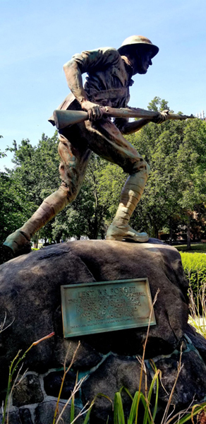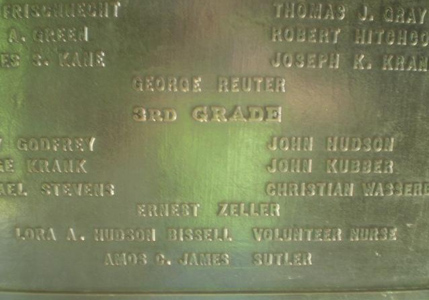 In  addition to the unique exterior design, an unusual aspect of the monument is in the interior on the bronze tablets listing not only individual officers and lower ranking soldiers but also commissary sergeants, hospital stewards, band members, and sutlers. But what is truly unusual is that these plaques also include the names of two women: Lora A. Hudson Bissell and Harriet Weld Corning.