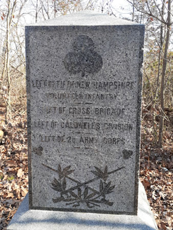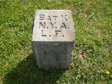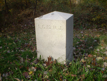 Another small marker, located just a short distance west of the Baltimore Pike at the intersection of Granite School House Lane and Blacksmith Shop Road, is for the 4th New Jersey Infantry Regiment, commanded by Major Charles Ewing and was part of the First New Jersey Brigade (see the “Faces of the battle” section on my “Something Different” page). Companies A, C, and H served as the brigade’s Provost Guard while the rest of the regiment guarded the Union Artillery Reserve train: