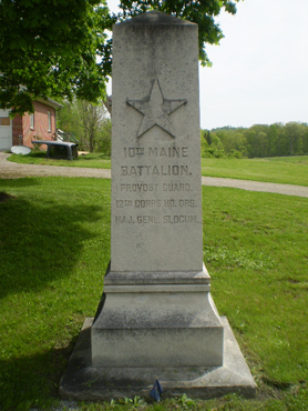 There are at least two small markers on the battlefield to honor Union troops that did not take part in any real fighting but served necessary roles nonetheless. Located along the east side of the Baltimore Pike roughly 70 yards south of the entrance to the new Visitor Center is the small marker for the 10th Maine Infantry Battalion, commanded by Captain John D. Beardsley, which served as the Provost Guard for General Henry W. Slocum’s XII Corps headquarters: