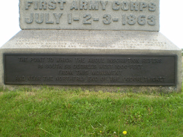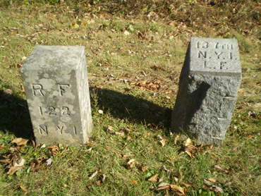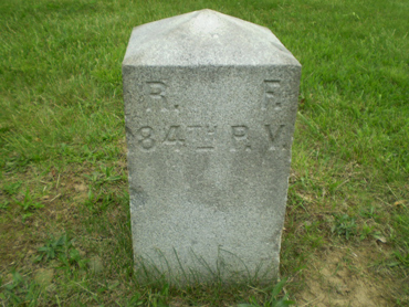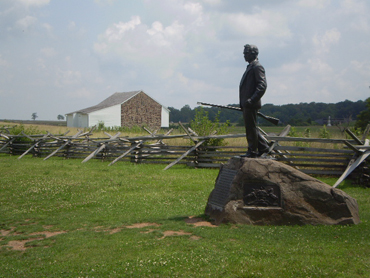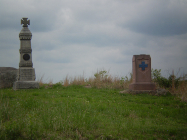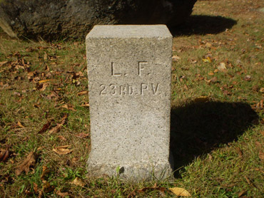 1. On the east side of Stone Avenue on McPherson’s Ridge roughly 50 yards north of the John Burns monument and about 10 yards off the road behind the wooden fence: