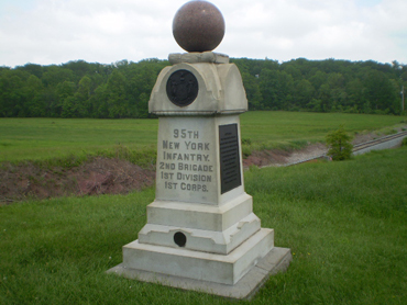 Many Union military units have more than one monument or marker on the battlefield (usually occurring as a result of newer and more elaborate monuments being constructed to replace an earlier one, with the original monument being moved to another location where that particular unit was also positioned during the battle). While the 95th New York Infantry Regiment (also known as the “Warren Rifles”) was not one of these units, it does have the distinction of having the most monuments/markers --- five !!!