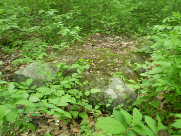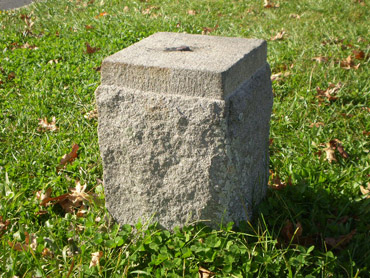 One of them is the original base for the monument to the 5th New York Cavalry Regiment, commanded by Major John Hammond and one of the regiments that participated in the ill-fated cavalry charge by Union General Elon Farnsworth’s Brigade (see the “The South Cavalry Battlefield --- the other cavalry action on July 3” section on my “Off the Usual Path” page). The original base is roughly 4 feet by 8 feet and located about 20 yards off of the west side of South Confederate Avenue about halfway up the hill as you climb northward along the western base of Big Round Top and the large parking area on the left. Look for the twin trees on your left and only a few feet off the road (see the left photo below):