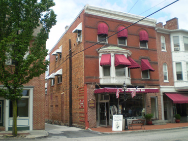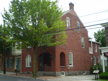 On the other hand, there is the interesting story of the capture and final outcome of the regimental flag of the 150th Pennsylvania Infantry Regiment at Gettysburg. As part of the Union I Corps, the regiment retreated through the town on the afternoon of July 1 when the entire Union line was forced to withdraw. The entire color guard had been killed or wounded and Corporal Joseph Gutelius of Company D eventually seized the fallen flag as they entered town. The generally accepted account is that Gutelius stopped to rest on a doorstep at the intersection of South Washington and West High Streets and was shot by pursuing Confederates, including Lieutenant F. M. Harney of the 14th North Carolina Infantry Regiment, who seized the regimental flag as a trophy.