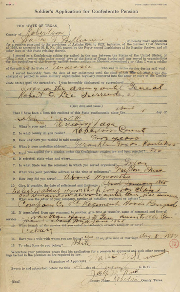 Oliver Pickett enlisted on February 21, 1863 in Company C (the "Carroll Boys") of the 24th Virginia Infantry Regiment in Carroll County, Virginia at 33 years old. During the Battle of Gettysburg, the 24th Virginia Infantry Regiment under the command of Colonel William R. Terry was in General James Kemper’s Brigade of General George Pickett’s Division, and was the furthermost regiment on the right flank during that fateful assault on July 3, 1863. At least part of the regiment was able to get inside of the Union lines; out of 395 men, the 24th Virginia Infantry Regiment suffered over 40% casualties (47 men killed, 83 wounded, and 33 missing or captured). Private Oliver Pickett survived the assault and the rest of the war, and died in 1911.