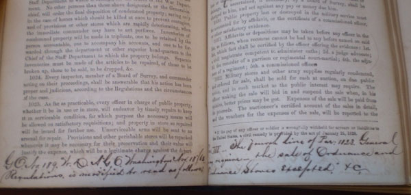 General Meade’s copy measures roughly 5 1/2" by 8 3/4" and contains 594 pages, some of which have notations made by General Meade as evidenced in the last photo above. One can only wonder when General Meade obtained this field manual --- could it have been that fateful morning in June of 1863 when he was given command of the Army of the Potomac only a few short days before the Battle of Gettysburg ??? If that book could only talk ….