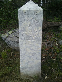 On another part of the battlefield, Culp's Hill, there is a small marker to a Union major, Major Joshua Palmer, of the 66th Ohio Infantry Regiment. To reach the marker, take the far left hiking path in front of the statue of Brigadier General George S. Greene down to the large monument to the 66th Ohio Infantry Regiment. The marker to Major Palmer is just a few yards further down the path: