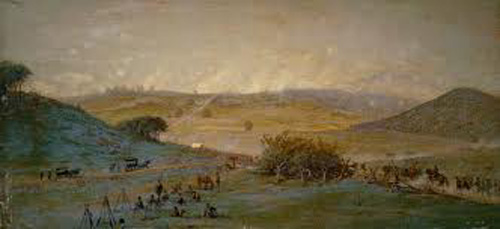 If you are even more adventurous, if you proceed carefully further down the hill through the underbrush approximately 60 yards to the east, you can find the large rock formation used as cover by Confederate soldiers that is depicted in the famous sketch and painting by Civil War artist/correspondent Edwin Forbes for Leslie's Weekly magazine: