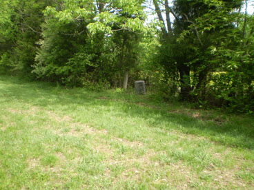 carefully  along Slocum Avenue as you approach Stevens Knoll and the clearing on your right (see the upper left photo below); then walk along the edge of the treeline on your right about 60 yards (see the upper right photo below) and go into the woods along a narrow footpath --- the marker will be in a small clearing (see the lower left photo below) and to the left of a similarly-sized marker to the entire regiment: