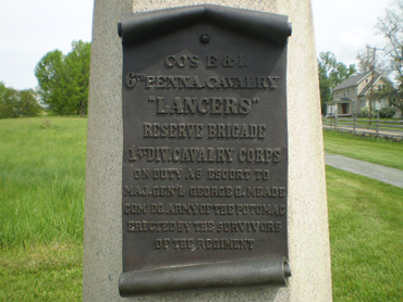 The monument to the 6th Pennsylvania Cavalry Regiment, also known as "Rush's Lancers," is located on the same side of the road about .3 of a mile to the north: