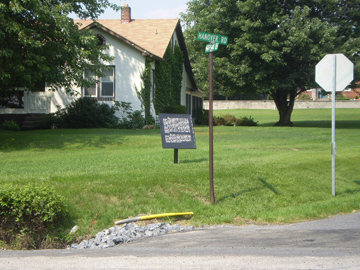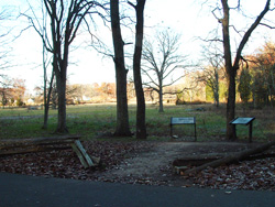 As you come around the bend in the road south of the Wheatfield where Cross Avenue becomes Brooke Avenue, park along the road before you get to the small bridge and take the path to the west across a foot bridge. Go about halfway toward the next foot bridge and then turn to the right and go about 40 yards to find the marker. However, you still have to walk through underbrush that can grab at your clothing.