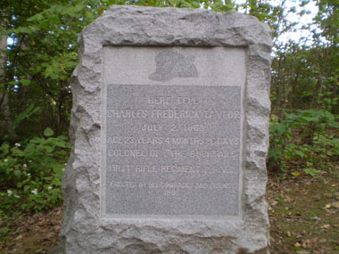 The plaque mentions the critical charge made by Captain William E. Miller's battalion of that regiment on that day (for more information, see the section below on this page dealing with lesser known or visited monuments and small markers to individual soldiers).